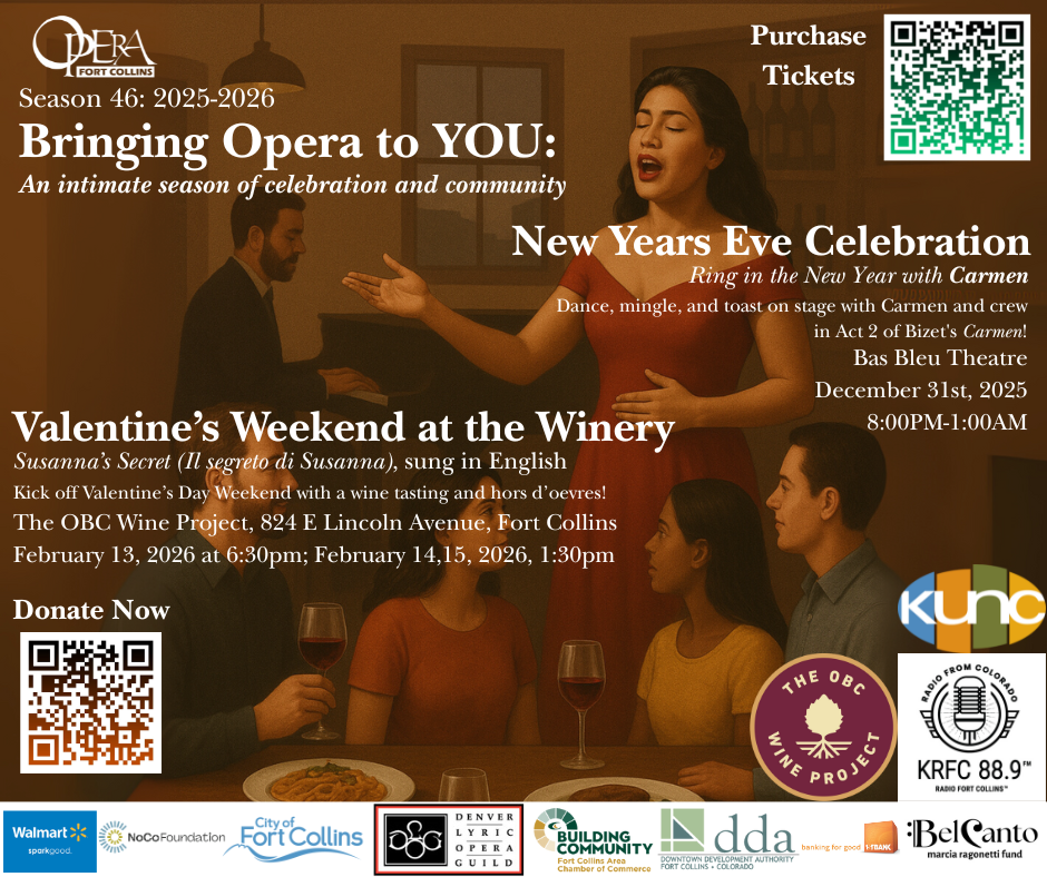 The staff and board of Opera Fort Collins live, work, and play next to you in our community. In this series, we introduce ourselves, show you what we do, why we are passionate about opera in our community, and how your donations help us bring opera to YOU!